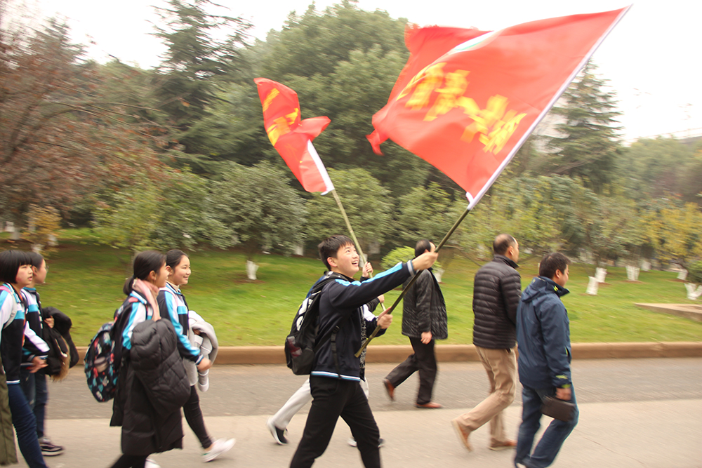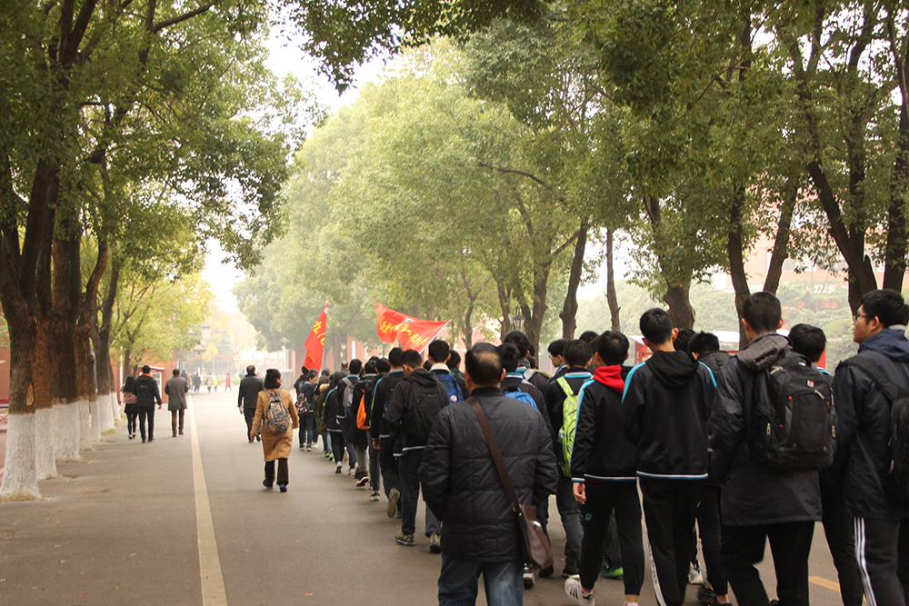 【概要描述】一個人至少擁有一個夢想,有一個理由去堅持。?  縱使是通衢廣陌,踽踽獨行,?  也要堅定心之所向。?  沿襲我校每年的傳統(tǒng),?  我校九年級畢業(yè)班學(xué)生,?  徒步往返十公里?  走進(jìn)華中師范大學(xué)第一附屬中學(xué),?  領(lǐng)略這所名校的優(yōu)雅大氣和不凡實力,?  讓孩子們身臨其境的感受這所名校的魅力~?  1、整裝待發(fā),斗志昂揚,列隊出發(fā),綠蔭道上青春無限??????  2、即使今天寒風(fēng)凌冽,孩子們熱情不減