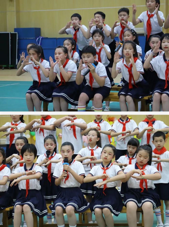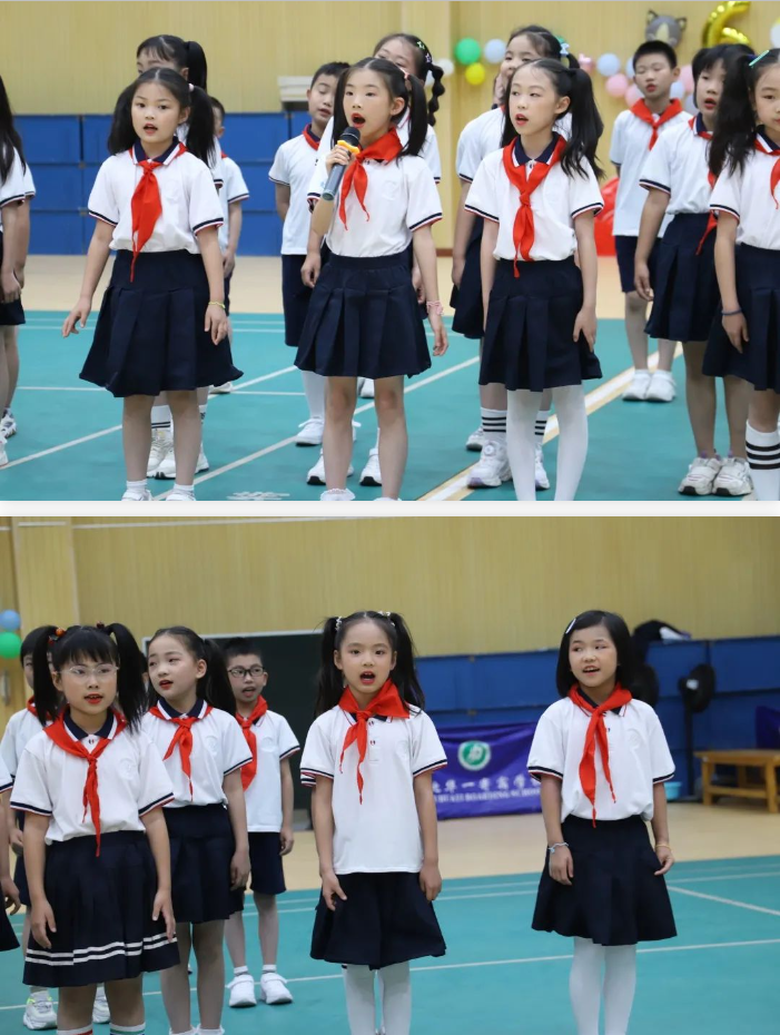 全體少先隊(duì)員高唱少年先鋒隊(duì)隊(duì)歌