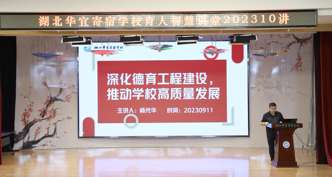 9月11日,我校育人智慧講堂202310講如期開講。本期由我校德育副校長楊光華帶來以《深化德育工程建設(shè) 推動(dòng)學(xué)校高質(zhì)量發(fā)展》為主題的講座。